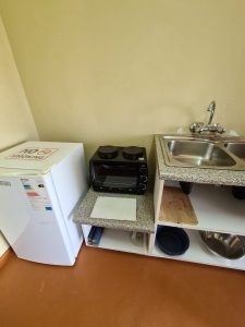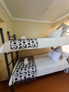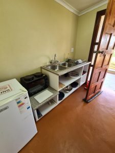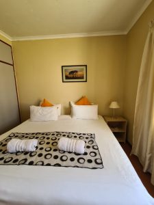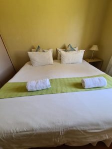 All these units are fully equipped for self-catering and has all the required crockery, cutlery, glasses, fridge, stove, microwave, toaster, kettle, pots and pans and kitchen accessories to cater for up to four people. The bathroom has a shower, a toilet and a hand basin. The bedroom has a TV with OVHD (Open View) that has both sport and movies, as well as children’s channels. Guests can bring their own DSTV decoder and connect it to the dish which is compatible.
